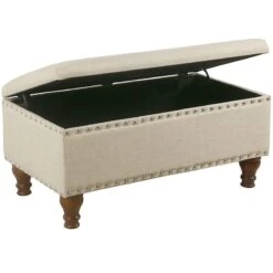 Jasmine Charcoal Grey Upholstered Storage Bench With Nail Heads