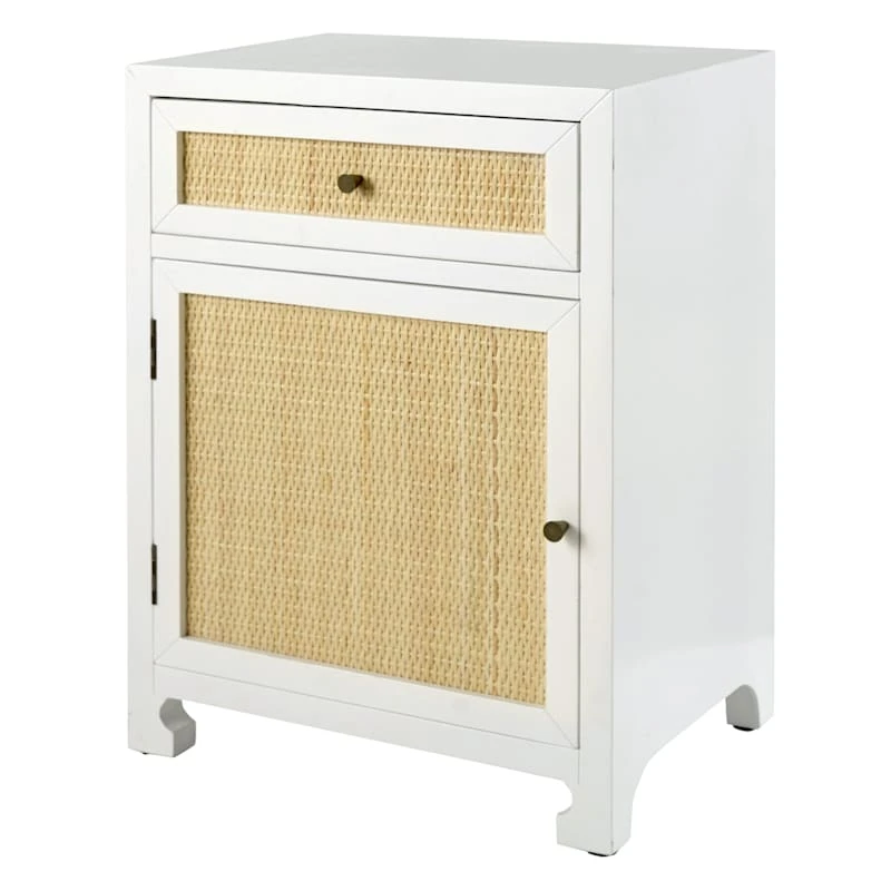 Bring the story of your home to life through one-of-a-pieces from the Grace Mitchell Collection by At Home. Even when space is limited, our Ellie Wood & Rattan Storage Cabinet fits right in and makes itself useful. You’ll love the fresh look of the cabinet’s simple (and versatile!) design featuring fresh white wood paired with rattan’s natural grain. You’ll find our delightful cabinet fits in anywhere and is designed to work as a nightstand, end table, or space-saving storage furniture.