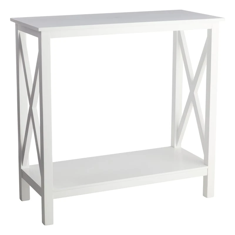 A collection that lets everyone relax in style. Polished finishes and classic hues pair with fun finds. Providence is where elegant settings still feel comfortable and warm—exclusively At Home. Traditional style meets timeless beauty with our Xavier white 30in. console end table. Serving as an ideal perch for photos, lamps, or other living room essentials. Sturdy construction ensures stability, durability, and longevity.