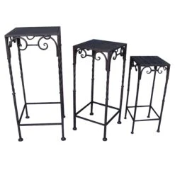 Square Wood Top Plant Stand With Brown Twist Metal Leg, Large